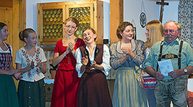 (13. Juli) Am Freitag, den 10. Juni 2011 wurde im historischen Fischerbau in Polling die Ausstellung „Huosi, eine Spurensuche zwischen Lech und Isar“ offiziell eröffnet. Seitdem betreuen abwechselnd die 27 Trachtenvereine des Huosigau die Ausstellung mit Tanz- und Musikeinlagen, sowie Ausstellungsführungen. Am Sonntag, den 10. Juli 2011, waren die Trachtenvereine „D’Ampertaler“ Grafrath und „D’Donarbichler“ aus Steinebach mit musikalischer Unterstützung der „D’Paartaler“ aus Merching an der Reihe, die Ausstellung zu betreuen. Los ging’s um 10.00 Uhr bei herrlichstem weiß-blau bayerischen Himmel und sommerlichen Temperaturen. Neben den geplanten Austellungsführungen, die um 11.00 Uhr, 14.00 Uhr und 16.00 Uhr statt fanden, konnten sich die Gäste auch an den verschiedensten Volkstänzen und Plattlern erfreuen wie z .B. dem Marschierboarischen, der Holsteiner Dreitour, dem Krüz-König, dem 1. Gauschlag oder dem Schnacklplattler. Eine zusätzliche Besonderheit an diesem Sonntag war die Anwesenheit der „Bajuwaren im Huosigau“, die den Zuschauern das Handwerk der Huosi näher vorstellten (www.huosi.de). Gegen 15.00 Uhr setzen leider Gewitter- und Regenschauer ein, die vielleicht den ein oder anderen Besucher abschreckten. Wie auch immer, die Resonanz der Führungen durch Barbara Pexa und Martina Jursch sowie die musikalischen und tänzerischen Einlagen fanden viel Applaus und natürlich hat es uns allen auch sehr gut gefallen, wieder einmal den Huosigau in all seiner Vielfalt präsentieren zu können. |