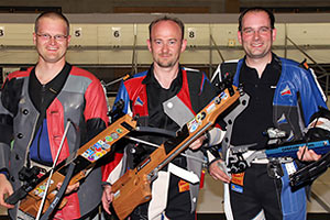 (08. Juni) Der mehrfache Armbrust-Welt- und Europameister Joachim Vogl aus Etterschlag gewinnt mit der ersten Mannschaft des Bayerischen Sportschützenbundes (BSSB) in der Disziplin Armbrust 10 m den Internationalen Mehrländerkampf Austria Open 2011 in Innsbruck. Vogl nutzte die Austria Open 2011 als Vorbereitungswettkampf für die Ende Juni 2011 im Ägerital in der Schweiz stattfindende 21. Armbrust- Europameisterschaft, für die er sich Anfang Mai qualifiziert hatte. Doch mit 585 Ringe (99/97/97/98/97/97) war der Deutsche Rekordhalter in Innsbruck nicht zufrieden: "Wie bei der EM-Qualifikation in Plattling beendete ich den heutigen Wettkampf mit einer Acht", was lediglich zu Finalplatz fünf führte. Im Finale der besten acht Schützen erzielte Vogl dann 97 Ringe und kämpfte sich damit auf den undankbaren vierten Platz nach vorne. "Abgesehen davon, dass ich mich mit dem Achter um eine Medaille gebracht habe, müsste ich so kurz vor der EM deutlich mehr auf die Scheibe bringen", haderte Vogl mit sich selbst. Besser lief es für ihn und seine Mannschaftskollegen Stefan Meixner (587 Ringe) und Norbert Ettner (577 Ringe), mit denen er die Austria Open 2011 - mit nur einem Ring Vorsprung vor der zweiten Mannschaft des BSSB - für Bayern gewann. Alle Ergebnisse und eine Bildergalerie zum Internationalen Mehrländerkampf Austria Open 2011 sind im Internet unter www.austria-open.at zu finden. |