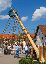 (25. April) Während andernorts bei den Maifeiern wohl wieder Randale angesagt sein wird, geht es in Wörthsee am kommenden Wochenende ausschließlich um Tradition und Spaß. In Auing, Etterschlag und Walchstadt werden neue Maibäume aufgestellt und in Steinebach, wo der Maibaum nur alle 3 Jahre “ausgewechselt” wird, gibt es ein großes Maifest. Wer überall dabei sein will, hat am kommenden Wochenende “volles Programm”! Den Anfang machen am Samstag die Auinger, die schon um 10.30 Uhr ihren Maibaum aufstellen. Die Auinger Zuschauer können dann noch in Ruhe Mittagessen bevor sie sich auf den Weg zur Steinebacher Kirche machen müssen, wo um 15.00 Uhr das Maifest beginnt. Dort warten dann schon Kuchen , Auszogne, Grillfleisch und Tegernseer Bier auf die Gäste. Dazu gibt es Wettbewerbe im Baumkraxln, Biertragl stapeln und Wettsägen. Ab 18.00 Uhr spielen dann die “Moosguichinger”. So zwischen 19 und 20 Uhr beginnen dann die Maibaumwachen in Etterschlag und Walchstadt. Dort können die Gäste noch bis spät in die Nacht sitzen ... und müssen sicher auch nicht verhungern und verdursten. Tags darauf stellen dann die Walchstadter ihren Maibaum ab 11.00 Uhr und die Etterschlager ab 13.00 Uhr auf. Danach geht es traditionell im Etterschlager Biergarten weiter. |