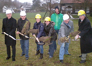 Bodenplatte noch heuer gegossen werden kann, erklärte der 1. Bürgermeister Peter Flach im Rahmen des Spatenstiches. |