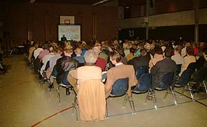 Schon vor Beginn der Veranstaltung war klar, dass es “heiß” hergehen könnte. Dem entsprechend groß war auch das Interesse der ca. 250 Zuhörer. Im Vergleich mit Bürgerversammlungen der