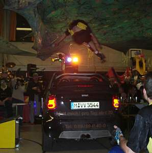Die Inlineskater wussten mit waghalsigen Stunts auf kleinstem Raum zu begeistern. Sicher ein Höhepunkt war das Überspringen eines Smart, der dabei unverletzt blieb