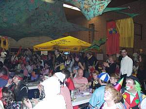 Über 300 “Faschingsnarren” bevölkerten die ausverkaufte Turnhalle. Dank der Band “Just for Fun” war die Tanzfläche immer gut gefüllt.